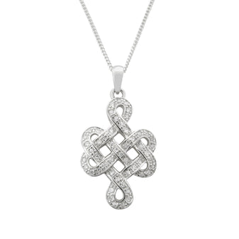 The Celtic Weave Symbol Sterling Silver Necklace is a celtic inspired design featuring cubic zirconia on an 18" curb chain