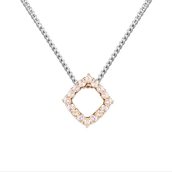 Square shaped gold plated sterling silver pendant featuring cubic zirconia on an 18" curb chain